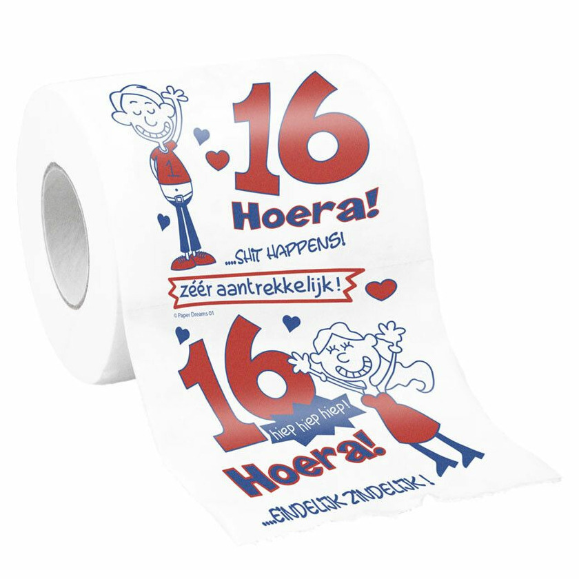 Cadeau toiletpapier/wc-papier rol 16 jaar – 16e verjaardag – Verjaardagscadeau –