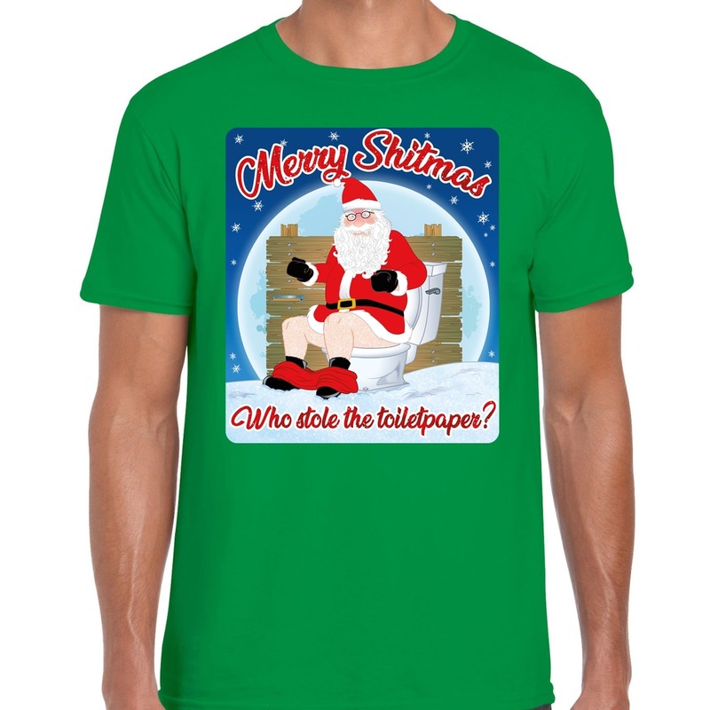 Fout kerst t-shirt merry shitmas toiletpaper groen voor heren
