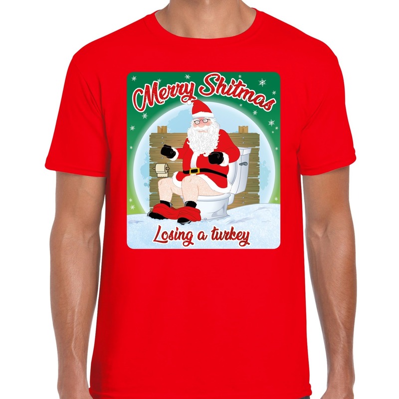 Fout kerst t-shirt merry shitmas turkey rood voor heren