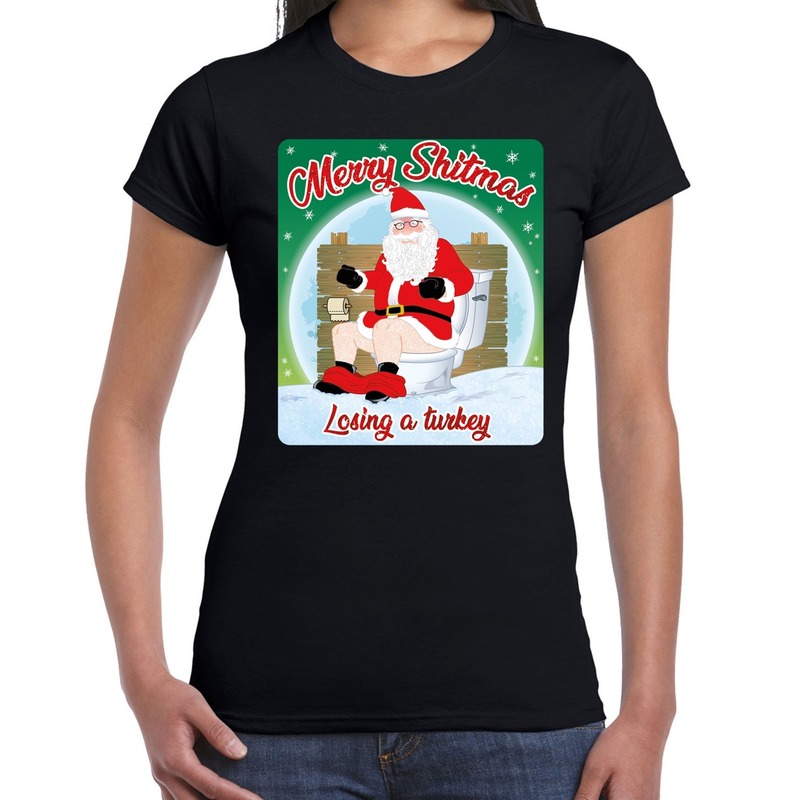 Fout kerst t-shirt merry shitmas toiletpaper zwart voor dames