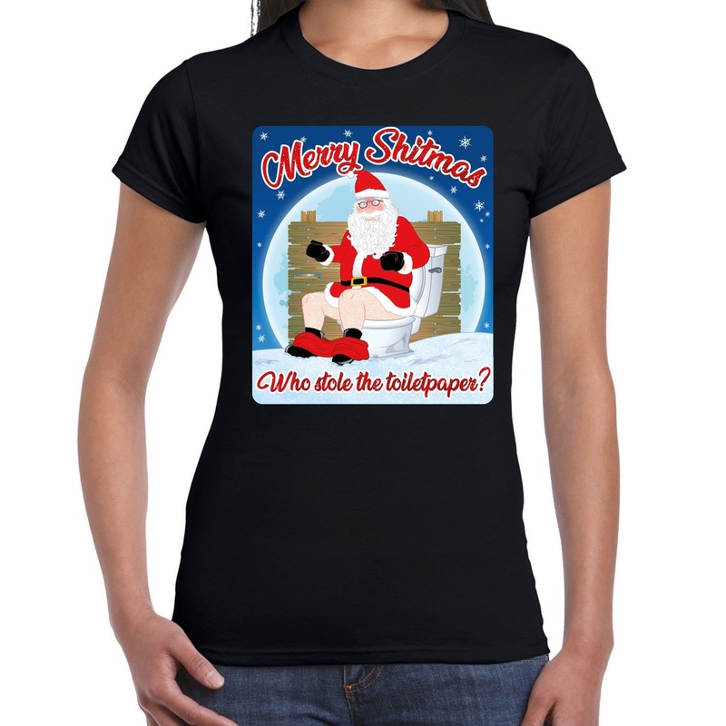 Fout kerst t-shirt merry shitmas toiletpaper zwart voor heren