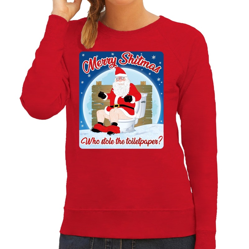 Foute kersttrui merry shitmas toiletpaper rood voor dames