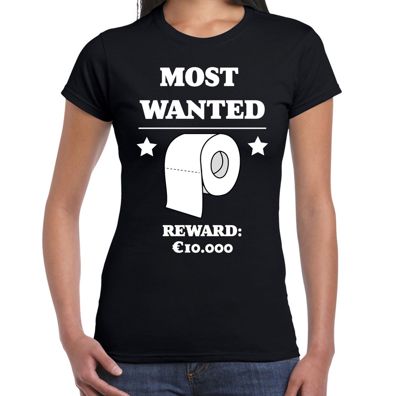 Most wanted toiletpaper reward 10000 euro t-shirt zwart voor dames