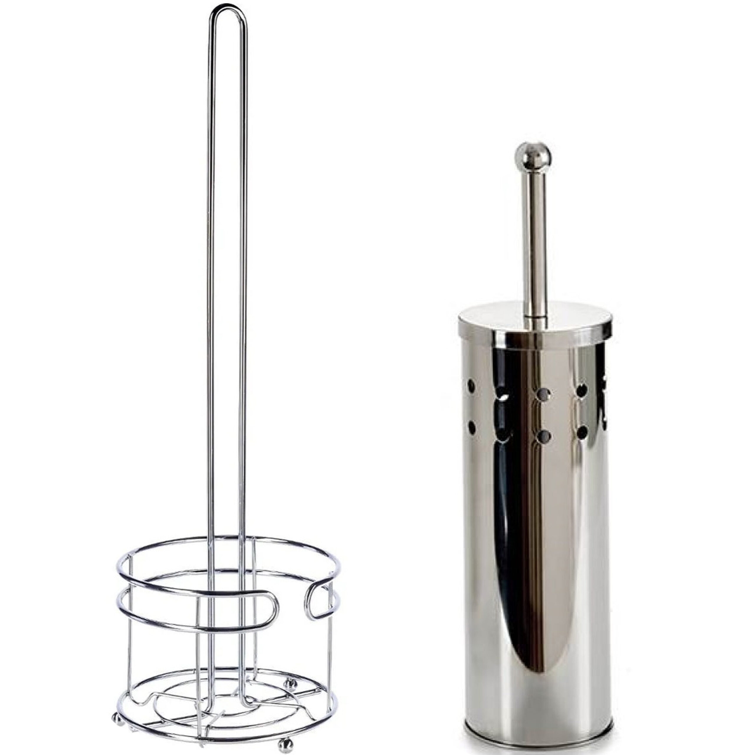 WC-/toiletborstel in houder 40 cm met wc-rollen houder – rvs zilver