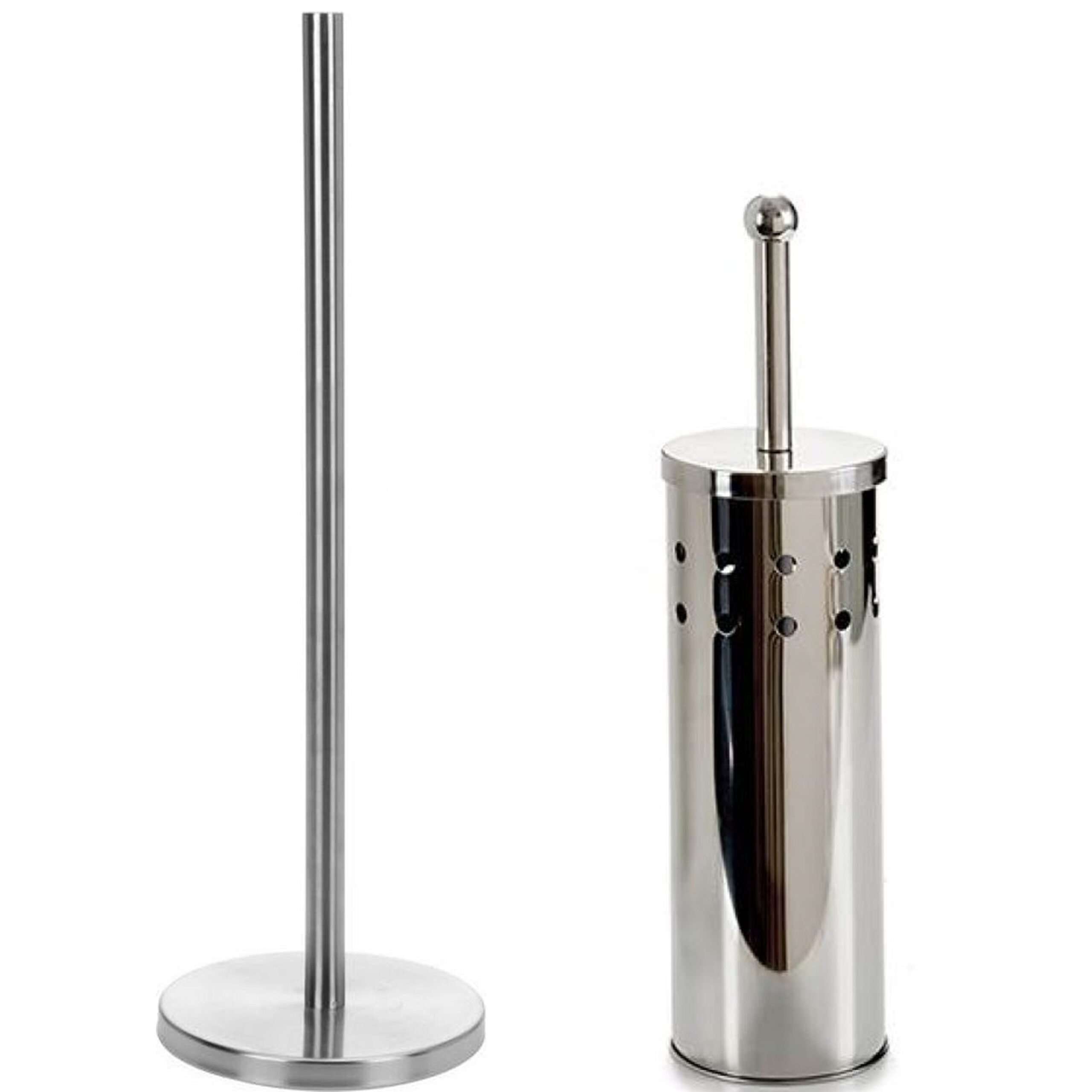 WC-/toiletborstel in houder 40 cm met wc-rollen houder – rvs zilver